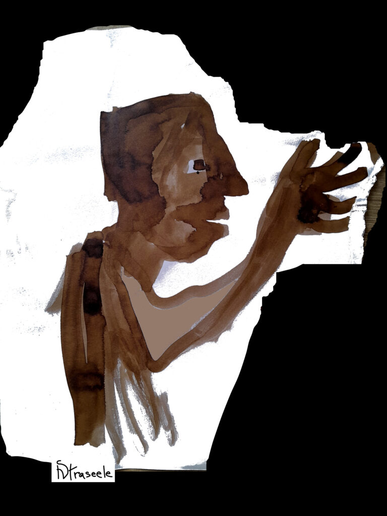 Ce « parcours de lecture » amène l’auditeur sur les chemins escarpés des montagnes, où ‘l’ours’ aurait enlevé une enfant. Les témoignages se succèdent, lus par Sandra Albanese. Respiration nécessaire, les fées, dont le chant poétique en contre-point fait entendre une autre voix(e?), sont incarnées par Nathalie Straseele dans leur parole. Pendant les témoignages c’est avec son tablier d’artiste et une technique très personnelle qu’elle illustre l’histoire en direct devant le public, qui assiste ainsi à la réalisation d’une œuvre graphique inédite.
